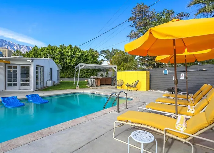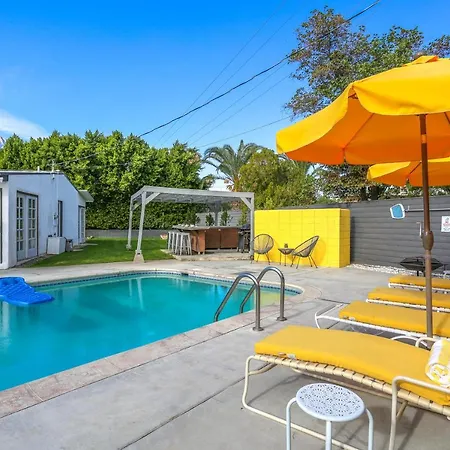 Palm Springs Pool Bungalow Permit# 1491 biedt paardrijtochten om je bezoek nog leuker te maken en bevindt zich op 3 km afstand van de Palm Springs Walk of Stars. Gasten kunnen genieten van wandelen, paardrijden en bowlen in het vakantiehuis, gelegen binnen een paar straten van het Chino Canyon.